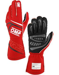 OMP First race glove, improved for 2025, is OMP's entry level FIA 8856-2018 glove for the grassroots competitor. The OMP First glove has been updated and improved even further, now with silicone printed on suede contact patches in the palm and on the and fingers. The revisions have improved comfort and increased the grip available with an updated graphic styling changes bringing them up to date. The OMP First racing gloves are manufactured from an ultra soft, fire resistant, knitted Nomex fabric, with an elasticized straight cut wrist closure. FIA 8856-2018 Approved. Available in red, blue, or black colors. Sizes: XS-XL.